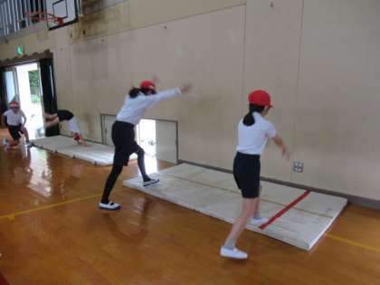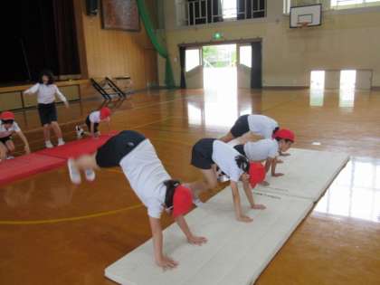 体育では,明日で最後になるマット運動で自分ができる技がもっときれいにきまるように練習をしています。側転のときに身体がまっすぐになるように,倒立を頑張っている様子が見られました。