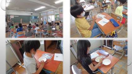 今までのおはしの持ち方を振り返り,正しくもつために,何を気をつけるといいか学習しました。豆つかみをした際は,「つるつるすべる〜!」と苦戦する姿もありましたが,正しいおはしの持ち方の確認をすることができました。
