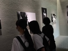 資料館では写真展示が充実していて,被曝の被害の大きさに目を奪われていました。解説なども熱心に読んでいました。