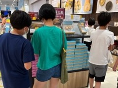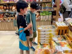 ハイウェイオアシスでの最後のお買い物です。お小遣いの残りを計算しながら品物選びをしています。