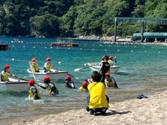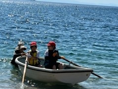 手漕ぎなので、なかなかまっすぐ進まず、ぐるぐる回ったり曲がって行ったりしましたが、みんな楽しくワイワイ漕いでいました。最後には二人で息を合わせてぐんぐん進むペアもいました。