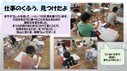 今日は一人ひとり調べた仕事のくふうを友達に伝えるための報告文を書きました。