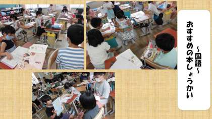 国語では,お気に入りの本しょうかいをしています。好きなところやおすすめしたいところを友達に伝え合うことができました。