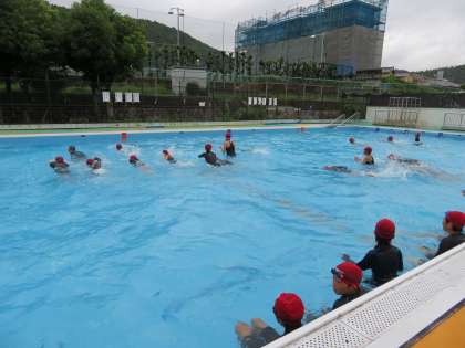 今日の水泳では検定をしました。どのくらい泳げるようになったかをテストします。授業のはじめには25m泳げなかった児童も泳げるようになっていて,成長を感じました!1度検定をしたあとにはそれぞれのレベルに合わせて練習をしました。25m泳げた子は50mを目指して練習したり,上の級を受ける子は平泳ぎ100mやバタフライ,タイムアタックなどに取り組んだりしていました。