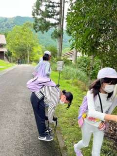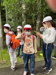 山の家の敷地内のオリエンテーリングに出かけました。まあまあ広さがあるので、子どもたちはあっちこっちクイズに答えながら歩き回っています。金木犀はなぜ葉っぱが上の方にしかないのでしょう??うーん、分からなーい!と悩む子どもたちです。雨が降らなくてよかった??