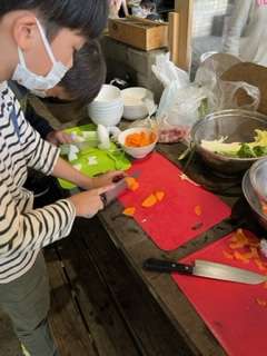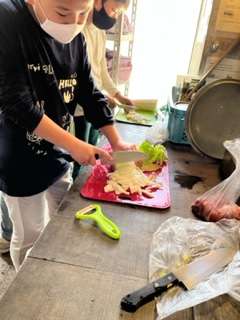 ひたすら切ります。大根は大きくて硬くて大変なようすです。手を切らないように気をつけて??