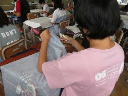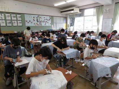家庭科ではエプロン作りがはじまりました。