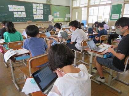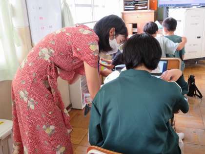 Unit4では夏休みの思い出を発表します。夏休みに行った場所,食べたもの,作ったものなどを簡単なスピーチにまとめます。今日はALTの先生がいたので英語への翻訳でわからないことは積極的に教えてもらっていました。