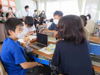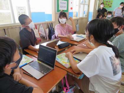 懇談会ではおうちの方にもロイロノートを使っていただきました。子どもたちは普段のさまざまな教科でロイロを活用しているので,どんなものを使っているか少しでも知っていただけてよかったです。