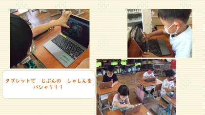 今日はタブレットで,写真を撮るだけでなく,文字や絵をかいたりしました。