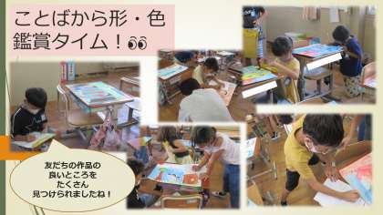 鑑賞の時間をとり,お友だちの作品のよさやいいなと思うところを見つけあい,伝えあいました。