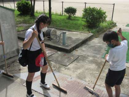 風が強い一日で教室付近まで落ち葉が飛んできたところを見た3年生たちが自らほうきを取出し,廊下をきれいにしてくれていました。