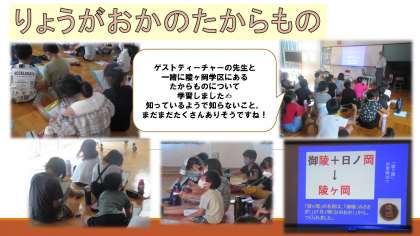 今日の総合的な学習の時間ではゲストティーチャーの先生をお招きして,ともに陵ヶ岡学区のたからものについて学習しました。