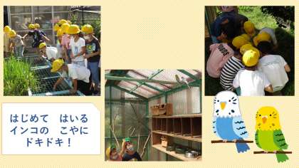 仲良く並ぶ2羽を見て,「かわいいね。」「仲良しなインコたちだね。」と和んだ様子が見られました。