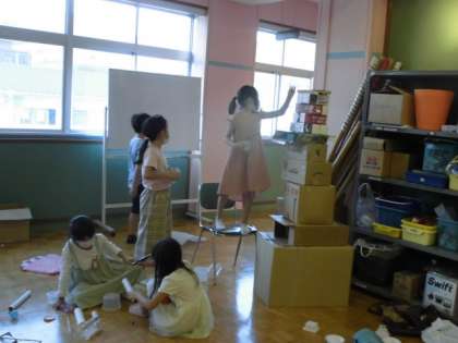 前回は並べることを中心に遊びを考えましたが,今回は積み上げることをテーマに遊びを考えました。「先生の背ぇより,高く積めたかな」「倒れるぅ」「あーぁ」など集めた材料を生活科ルームいっぱいに広げて,遊びを模索します。今後はどんな遊びが繰り出されるか楽しみです。