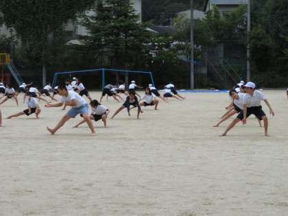 本番に向けて裸足でソーラン節をしました。「足が痛い。」と言っていましたが,当日通りやることで本番が意識できたようです。声だし,キレのある動きなどができるようになってきてとてもかっこいいです。