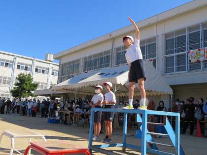 下学年の競技や演技がはじまると応援を頑張っていました。2年ぶりに下学年の競技や演技を見ることができて,うれしそうでした!