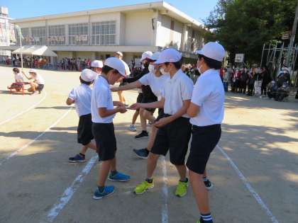 委員会では下学年の競技のあとにカードを渡しました。かがんだり,声をかけたりしていてとても素敵でした。