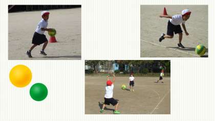 高く投げたり,投げている間に手をたたいてみたり,いろいろなボールの投げ方に挑戦しました。