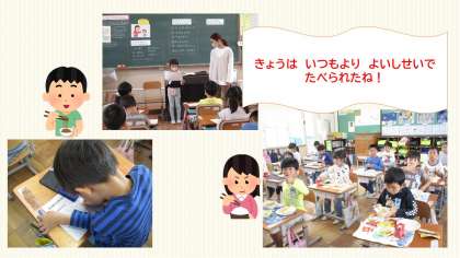 今日の給食の時間はお手本のような食べ方ができていた人が特に多かったです。明日以降も是非続けていきましょう!