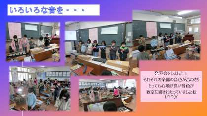 音楽の時間に,いろいろな楽器を使って発表会を行いました。