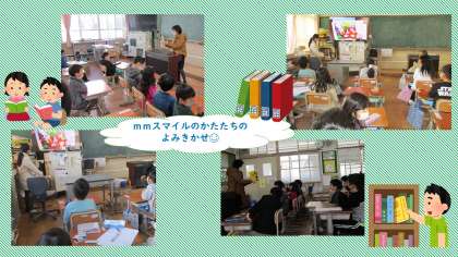今日の中間休みはmmスマイルの方々に読み聞かせをしていただきました。