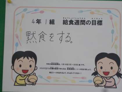 1組はみんなで決めた「もく食」を目標に頑張っています!