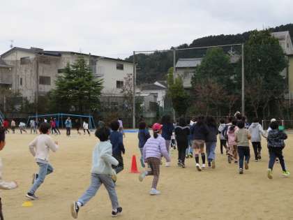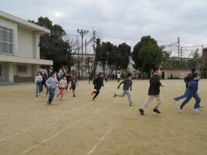 今月末のランニングデイに向けて中間マラソンがはじまりました。低学年,高学年に分かれて5分間走をします。寒さに負けず,一生懸命走っている姿が見られました!