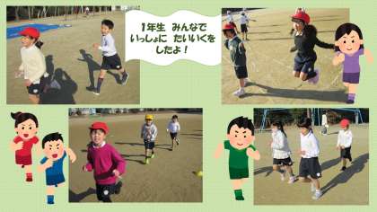 1組さんははじめて持久走の練習をしましたが,同じペースで走ることが難しそうな様子が見られました。