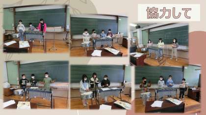 音楽の時間には,グループに分かれて演奏の練習をしています。