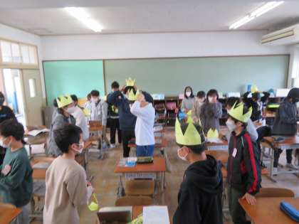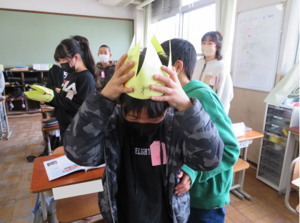 今日は「6年生を送る会」がありました。朝の時間には4年生が王冠を作って持ってきてくれました。6年生のみんなはとても喜んでいて,授業時間もうれしそうにかぶっていました。
