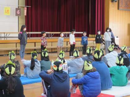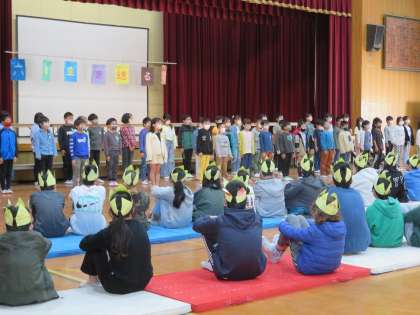 3年生も歌を歌ってくれました。自分たちの登下校を思い出しながら聴いていました。4組は「エビカニクス」を踊ってくれました。「いっしょに」と呼び掛けてくれたので6年生も一緒に楽しく踊りました。