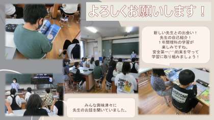 はじめましての先生の自己紹介と1年間で学ぶ内容を聞きました。
