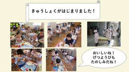 きゅうしょくがはじまりました!