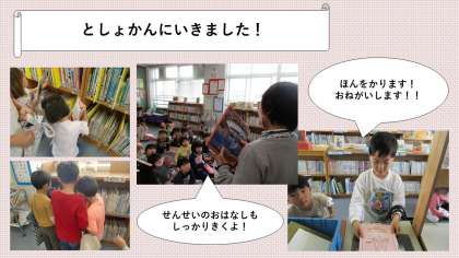 国語の学習では図書館へ行きました。