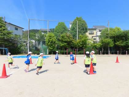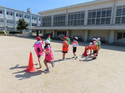 体育ではリレーの学習を行っていました。