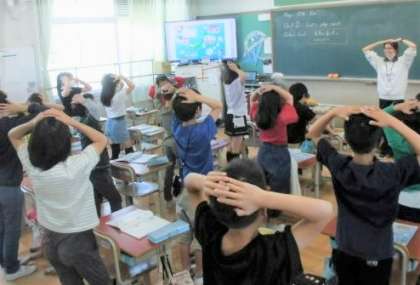 外国語活動をjoy先生としました。外国語を通して伝わる喜びを感じ取ることができます。伝わらないと恥ずかしいと思う場面もあるようです。そんなときは,ボディラングエッジと伝え合っています。