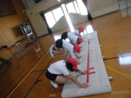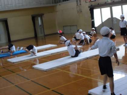マット運動をスタートしました。まずは基本となる前転をしました。どうしても勢いをつけることができず,マットに手をついてしまう子もいました。そんなとき「お腹みるねん」「もっとしっかりけるといいよ」と語り合いがありました。体育はそんな話合いこそが大切です。3年生までの積重ねを感じせてくれる一面です。