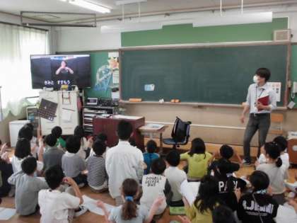 本日の音楽も学年で取り組みました。曲に乗せて,手話を試してもみました。映像を見ながら「う?難しい?」「サビは繰り返しやから,覚えた」など心の声が口々にもれました。いよいよ発表に向けて伏線回収となります。完成が楽しみです。