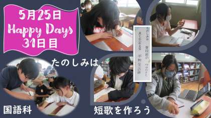 国語科では「たのしみは」から始まる短歌作りに挑戦しています。