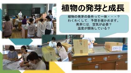 理科「植物の発芽と成長」では,発芽の条件を調べるためにインゲン豆を用いて実験を行っています。