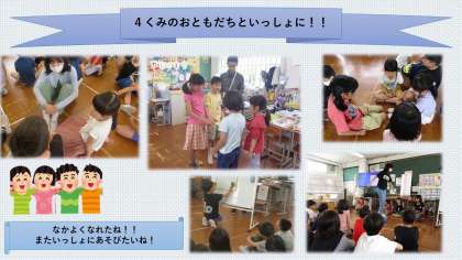 交流後も4組の教室に遊びに向かったり、運動場で4組の友達と遊んだりする姿が見られました。