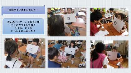 今日の3時間目の国語の時間には、1組と2組合同で「なにの○○でしょうクイズ」を行いました。