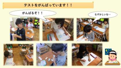 今日は国語と算数のテストを行いました。