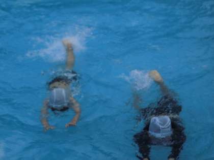 2年生の時からレベルアップして、3・4年生は「浮く・泳ぐ」運動を学習します。