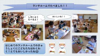 ランチルームでの給食はとても楽しく次が待ち遠しいようです。