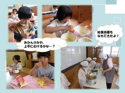 「みかん凍ってるよ!」「だんだん溶けてきた!」「皮ってどうやってむくの?」とみんなワクワクしながら食べてくれました。