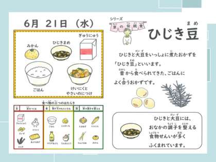 「わたしはみかんとごはんがおいしかったです。なぜかというとみかんは中がしゃりしゃりでおいしかったし、ごはんは、プールのあとやからごはんがあたたかくておいしかったです。あしたもおいしいきゅうしょくつくってね」(2年児童)