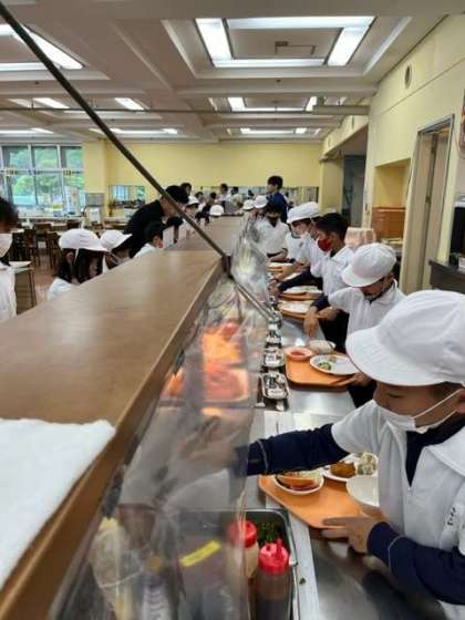 昼食はバイキングです。好きなものを各自が選んで食べられます。バランスよく上手に取れたかな??