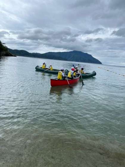 初めてのカヌーでしたが、みんなどんどん漕ぎ方をマスターして、海をスイスイ進んでいました。